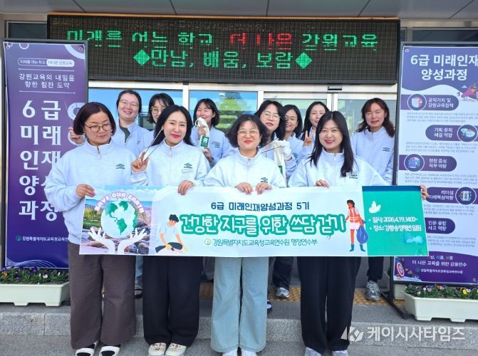 (케이시사타임즈) 강원특별자치도교육청교육연수원은 4월 13일, ‘6급 미래인재양성과정 5기’ 연수생들과 함께 지역 생태 자산의 가치를 보존하고 기후 위기 대응을 실천하기 위한 ‘건강한 지구를 위한 환경봉사 쓰담걷기’ 프로그램을 운영했다.