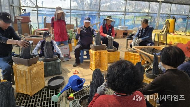 한흥동 전(前) 충남관상국화연구회장이 강사를 맡았으며, 지난 13일 국화석부작 품종별 특성, 작품 소재 준비 등을 주제로 첫 교육이 진행됐다.