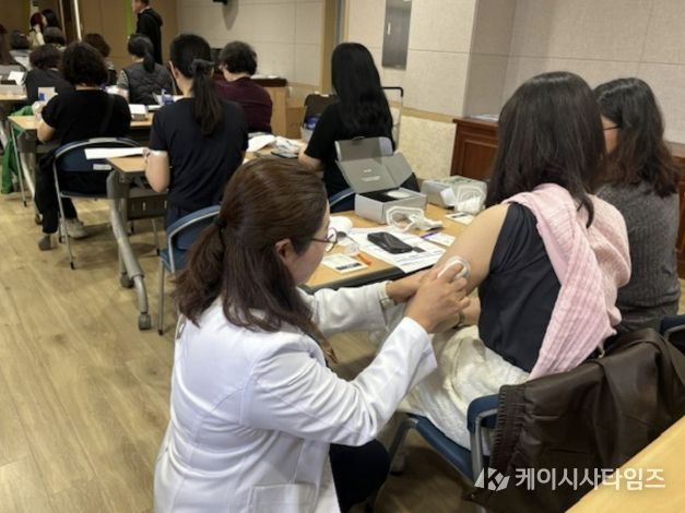 이날 교육에는 참여자 41명이 참석해 △혈압·당화혈색소 등 기초 건강검사 △인바디 측정 △연속혈당측정기 부착, 사용법 교육 △온라인 건강강좌 수강 안내 등이 진행됐다.