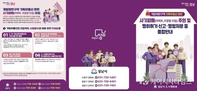 (케이시사타임즈) 성남시는 최근 개발이 불가능하거나 제한적인 개발제한구역(그린벨트) 내 토지를 곧 해제될 것처럼 속여 고가에 판매하는 이른바 ‘기획부동산’ 사기가 증가함에 따라 시민 주의를 당부하고, 안내문을 제작·배부한다고 밝혔다.