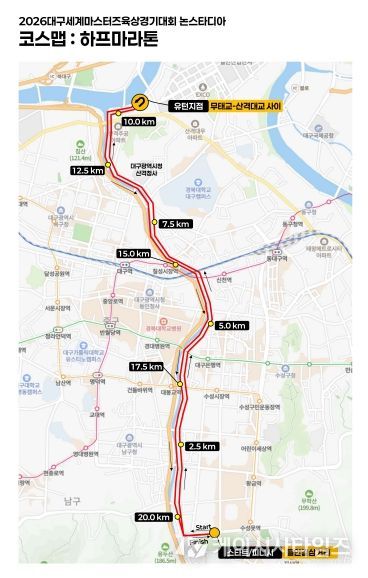 특히 최근 러닝 붐과 함께 관심이 높은 10km 달리기는 대구스타디움 인근 도로를 활용한 코스로 운영되며, 하프마라톤은 들안길삼거리를 출발해 신천동로를 따라 산격대교 하단에서 반환하는 코스로 설계했다. 신천의 아름다운 도심 경관을 세계 각국 참가자들에게 선보일 수 있을 것으로 기대된다.
