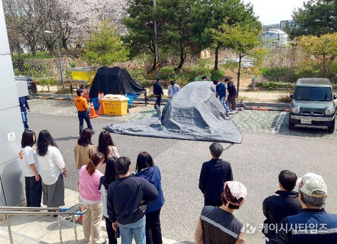 (케이시사타임즈) 파주도시공사는 지난 4월 14일 문산행복센터에서 상주기관 및 파주소방서와 함께 전기차 화재 대비 훈련을 실시했다.