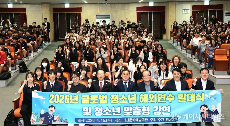 (케이시사타임즈) 충북 괴산군은 15일 괴산문화예술회관에서 괴산고등학교 및 관내 중학교 학생들을 대상으로 ‘글로벌 청소년 해외연수 발대식’을 개최했다고 밝혔다.