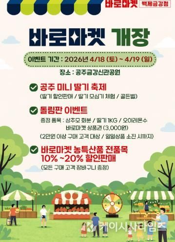 (케이시사타임즈) 공주시는 오는 4월 18일부터 금강신관공원 일원에서 ‘2026년 바로마켓 광역 직거래 장터 ‘바로마켓 백제금강점’을 개장하고 본격 운영에 들어간다고 밝혔다.