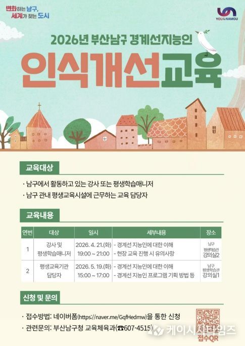 (케이시사타임즈) 부산 남구는 경계선지능인의 이해를 높이고 포용적인 지역사회를 조성하기 위해‘경계선지능인 인식 개선 교육’ 참여자를 모집한다.