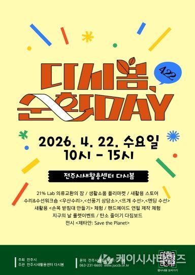 (케이시사타임즈) 전주시새활용센터 ‘다시봄’은 오는 22일 ‘지구의 날’을 맞아 의류 폐기물을 줄이고 자원 순환의 가치를 공유하는 ‘다시봄 순환 Day 4.22’ 행사를 개최한다.