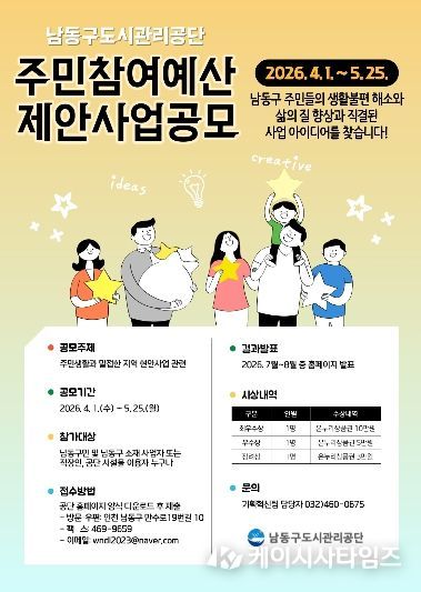 (케이시사타임즈) 인천시 남동구도시관리공단은 주민이 직접 지역 현안을 해결하고 실질적으로 체감할 수 있는 사업을 발굴하기 위해 ‘2026년도 주민참여예산제’를 본격 운영한다고 16일 밝혔다.