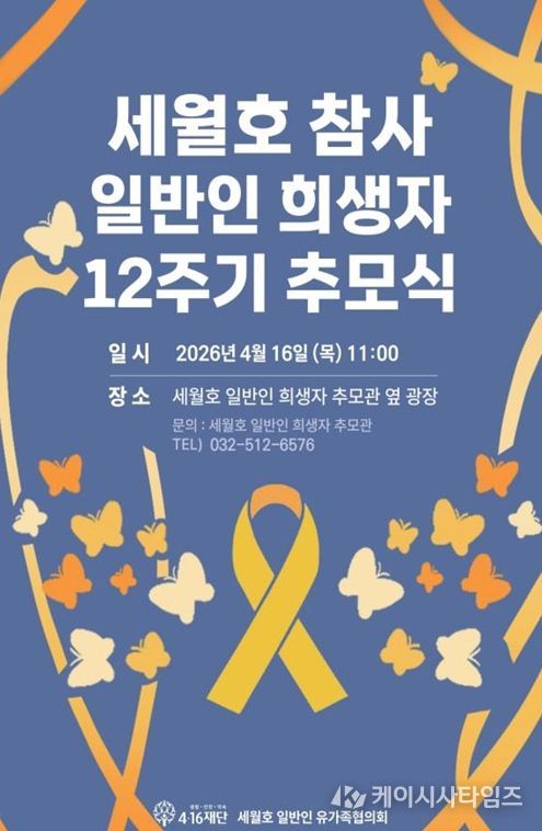 (케이시사타임즈) 인천광역시는 4월 16일 오전 11시 인천가족공원 내 세월호 일반인 희생자 추모관 인근 광장에서 세월호 참사 일반인 희생자 12주기 추모식을 개최했다고 밝혔다.