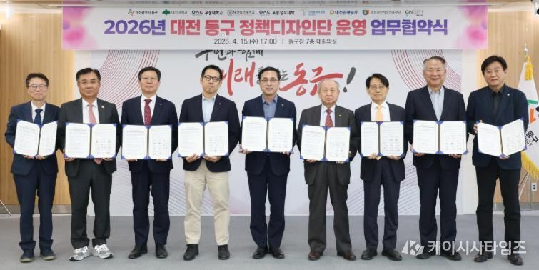 (케이시사타임즈) 대전 동구는 지·산·학 협력 기반의 ‘정책디자인단’ 운영을 위해 지난 15일 지역 대학 및 관계기관과 업무협약을 체결했다고 밝혔다.