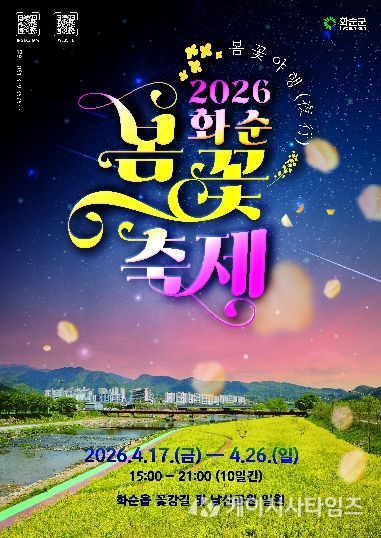 (케이시사타임즈) 전라남도 화순군은 봄을 맞아 지역 대표 축제인 ‘2026 화순 봄꽃 축제’를 오는 4월 17일부터 26일까지 10일간 화순 꽃강길과 남산공원 일원에서 개최한다고 밝혔다.