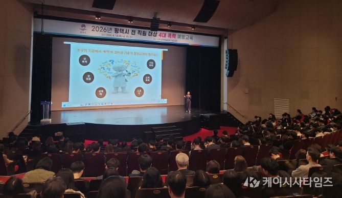(케이시사타임즈) 평택시는 지난 14일과 15일 이틀간 평택시 남부문화예술회관에서 6급 이하 전 직원을 대상으로 4대 폭력 예방 교육을 진행했다고 밝혔다.