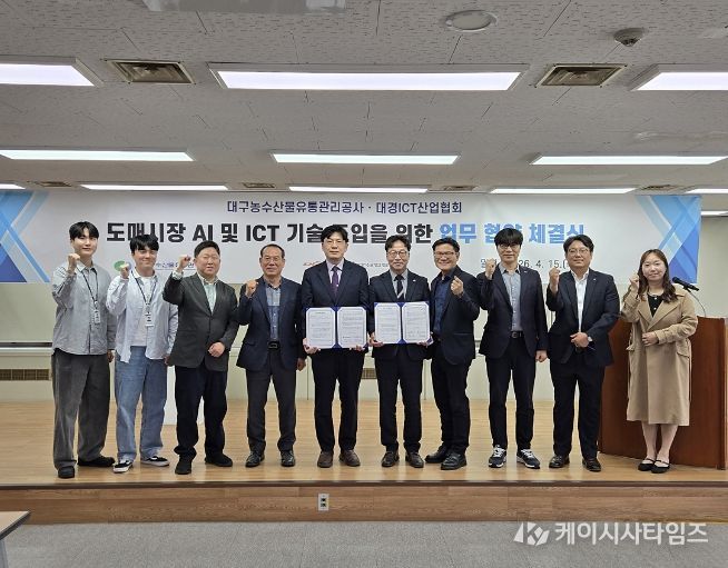 (케이시사타임즈) 대구농수산물유통관리공사는 급변하는 유통 환경에 발맞춰 도매시장의 디지털 전환을 가속화하고 첨단 스마트 유통 생태계를 조성하기 위해 지난 4월 15일 대경ICT산업협회와 업무협약을 체결했다.