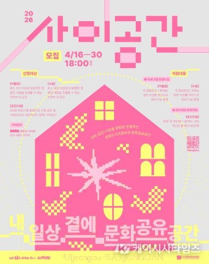 (케이시사타임즈) 의정부문화재단이 문화도시조성사업의 주요 과제인 ‘15분 문화생활권’ 조성을 위해 2026 문화 공유공간 지원사업 '사이공간' 참여 공간을 오는 4월 30일 18시까지 모집한다.
