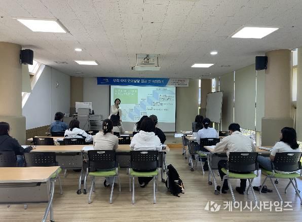 이번 교육에서는 서유진 리드언어학습상담센터장이 강사로 나서 영유아 언어발달 검사(SELSI)의 개요와 영유아의 언어 발달 과정 등을 설명했다.