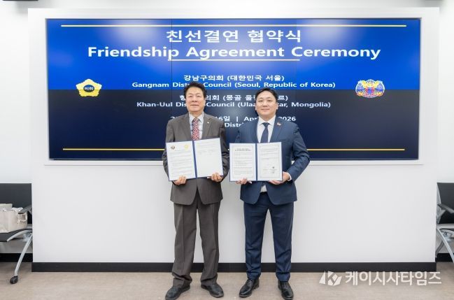 (케이시사타임즈) 강남구의회는 16일 오전 강남구의회를 내방한 몽골 항올구시민대표회의(의장 바트-오르길) 대표단을 접견하고 협약을 체결했다.