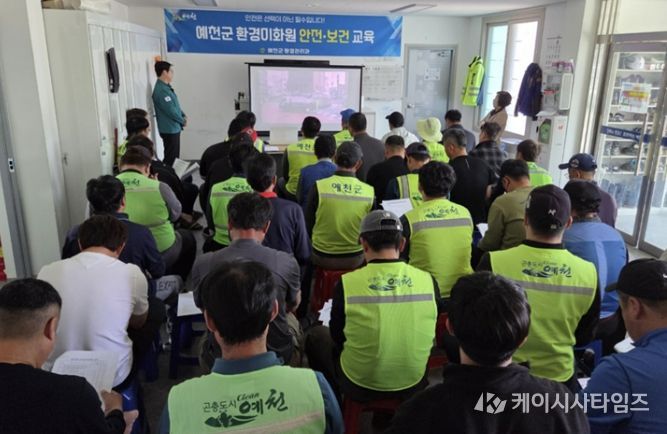 (케이시사타임즈) 예천군은 지난 16일 예천순환형매립장 환경미화원 휴게실에서 환경미화원 및 관계자 등 50명을 대상으로 안전사고 예방 및 복무 교육을 실시했다고 밝혔다.