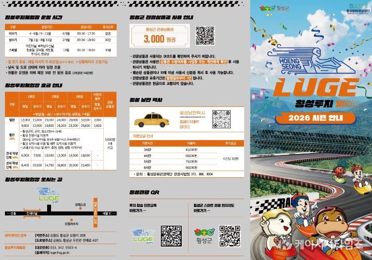 이재성 횡성문화관광재단 대표이사는 “철저한 안전 관리와 차별화된 마케팅을 통해 횡성루지체험장이 지역 관광 경제에 활력을 불어넣는 핵심 거점이 될 수 있도록 최선을 다하겠다”고 밝혔다.