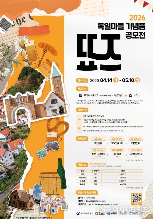(케이시사타임즈) 남해군관광문화재단이 ‘2026 독일마을 기념품 공모전, 뚀즈’를 개최하기로 하고, 4월 14일부터 5월 10일 18시까지 참가 접수를 진행한다고 밝혔다.