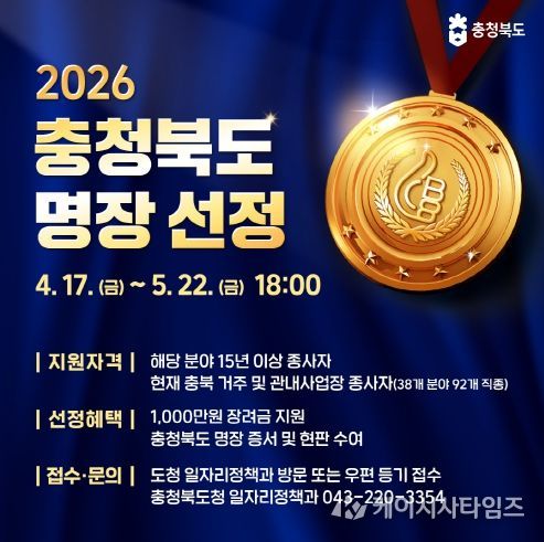 (케이시사타임즈) 충북도는 산업현장에서 최고 수준의 숙련기술을 보유한 ‘2026년도 충청북도명장’을 선정한다고 17일 밝혔다.