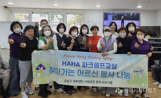 (케이시사타임즈) 부산 금정구 하하센터(금사동 소재)는 지난 14일 신노년 건강강좌 파크골프교실 수강생들이 관내 어르신 주간보호센터를 방문해 찾아가는 재능기부 봉사활동을 실시했다고 밝혔다.