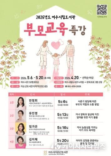 (케이시사타임즈) 여수시립도서관은 가정의 달을 맞아 부모 역할의 이해와 올바른 자녀 양육에 도움을 주기 위해 ‘부모 교육 특강’을 운영한다.