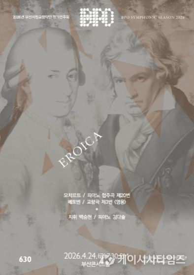 (케이시사타임즈) 부산시립교향악단이 오는 4월 24일 오후 7시 30분, 부산콘서트홀에서 제630회 정기연주회 '에로이카(EROICA)'를 개최한다. 이번 공연은 고전주의의 균형에서 출발해 낭만주의의 확장으로 나아가는 흐름 속에서, 불안과 긴장을 넘어서는 인간의 의지를 조명하는 무대로 마련된다.