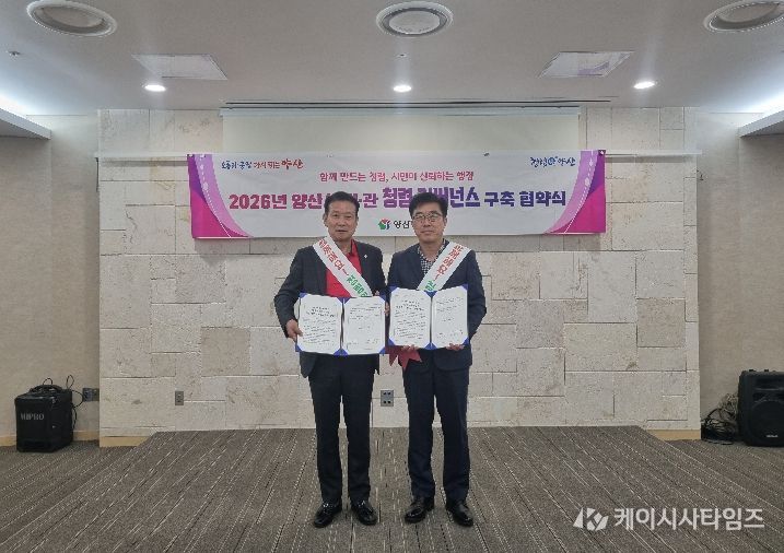 (케이시사타임즈) 양산시 시민통합위원회(위원장 박원현)와 양산시 소통담당관은 2026년 4월 16일, 양산시립박물관에서 민‧관 청렴거버넌스 공동 협약식을 체결했다. 이번 협약은 청렴한 행정문화 정착과 시민과의 신뢰 구축을 목표로 마련됐다.