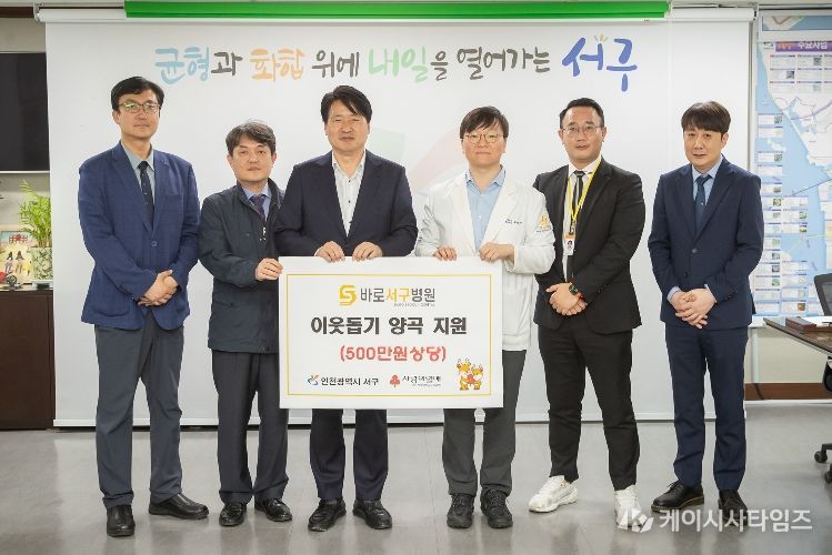 (케이시사타임즈) 인천 서구는 지난 16일 바로서구병원(대표원장 유범석·김훈철)으로부터 취약계층 지원을 위한 양곡(500만 원 상당)을 전달받았다고 밝혔다.