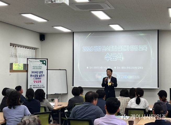 (케이시사타임즈) 광양시와 (사)광양기후·환경네트워크는 4월 16일 광양시 환경교육센터에서 ‘2026년 탄소중립 실천가 양성교육’ 수료식을 열고 41명의 새로운 탄소중립 실천가를 배출했다고 밝혔다.