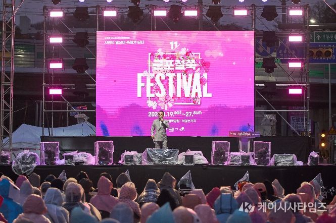 암전과 동시에 시작되는 카운트다운은 관객의 시선을 하나로 모으며, 이어지는 조명쇼와 영상이 철쭉이 피어나는 계절의 흐름을 생생하게 펼쳐낸다. 화려한 조명과 공간을 가득 채운 꽃잎, 관객의 움직임이 어우러지며 축제장은 무대와 객석의 경계가 허물어지고 모두가 함께 만드는 축제의 순간을 완성한다.