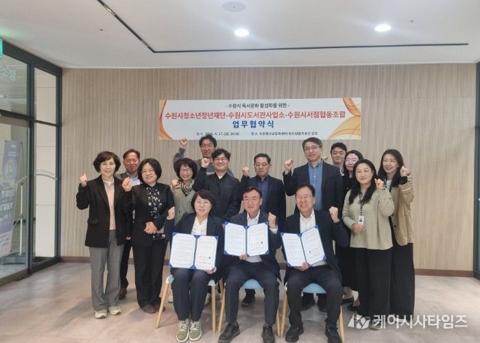 (케이시사타임즈) 수원시 도서관사업소와 수원시청소년청년재단, 수원시서점협동조합이 지역 독서문화 활성화와 시민 독서활동 증진을 위해 협력하기로 했다.