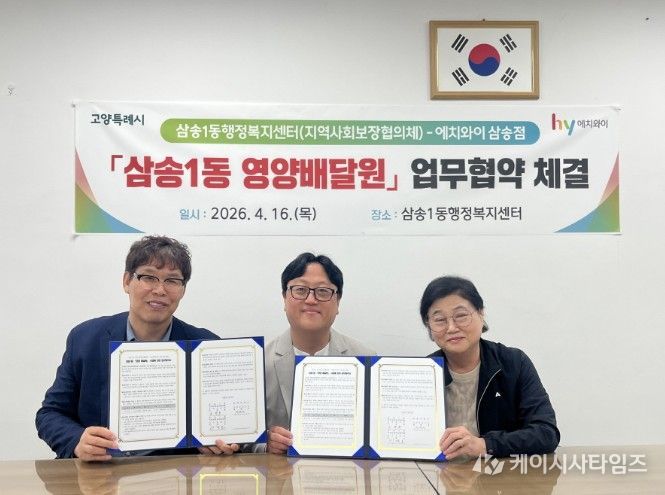 (케이시사타임즈) 고양특례시 삼송1동은 지난 16일 취약계층의 건강과 안부를 동시에 살피는 ‘영양배달원’사업 추진을 위해 지역사회보장협의체와 ㈜에치와이 고양 삼송지점이 업무협약을 체결했다.