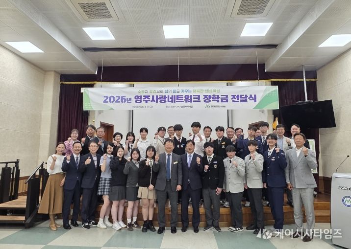 (케이시사타임즈) 재경 영주 출신 재계, 관계, 법조계, 학계, 언론계 인사들의 모임인 영주사랑네트워크 (회장 이종오)가 4월 17일 영주교육지원청에서 영주지역 9개 고등학교 학생 20명에게 1,000만원의 장학금을 전달했다.