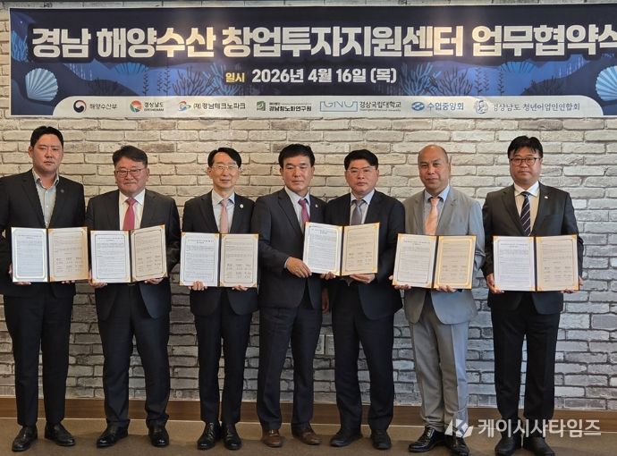 (케이시사타임즈) 경상국립대학교 해양과학대학은 경상남도 해양수산 창업투자 활성화를 위해 4월 16일 경남테크노파그에서 경상남도, 경남테크노파크, 경남항노화연구원, 수협중앙회 경남본부, 경상남도 청년어업인연합회 등과 업무협약(MOU)을 체결했다.
