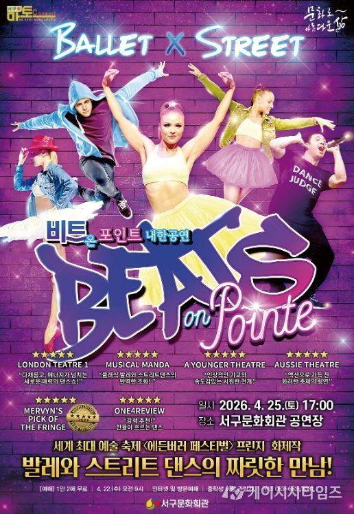 (케이시사타임즈) 서구문화회관은 4월 25일 오후 5시 서구문화회관 공연장에서 4월 서구愛 마토콘서트로 댄스 퍼포먼스'비트 온 포인트'내한 공연을 개최한다.