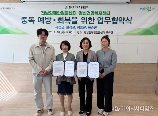 (케이시사타임즈) 화순군은 지난 16일 화순군정신건강복지센터가 전남함께한걸음센터와 지역사회 마약류 및 약물 오남용 예방과 회복 지원 강화를 위한 업무협약(MOU)을 체결했다고 밝혔다.