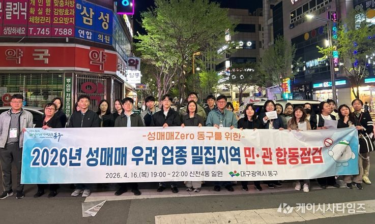 (케이시사타임즈) 대구 동구청은 지난 16일, 신천동 동대구복합환승센터 일대에서 성매매 우려 업소를 대상으로 민·관 합동 야간 점검과 홍보 캠페인을 실시했다.