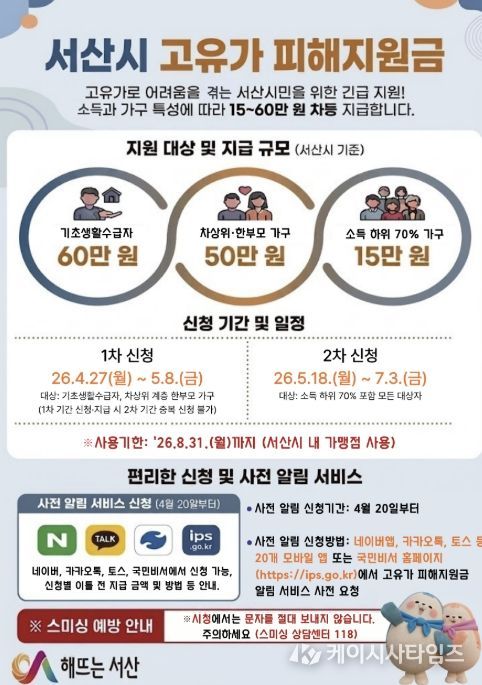 (케이시사타임즈) 충남 서산시가 유가 상승으로 인한 시민의 부담을 줄이기 위해 ‘고유가 피해 지원금’ 지급에 행정력을 집중한다.