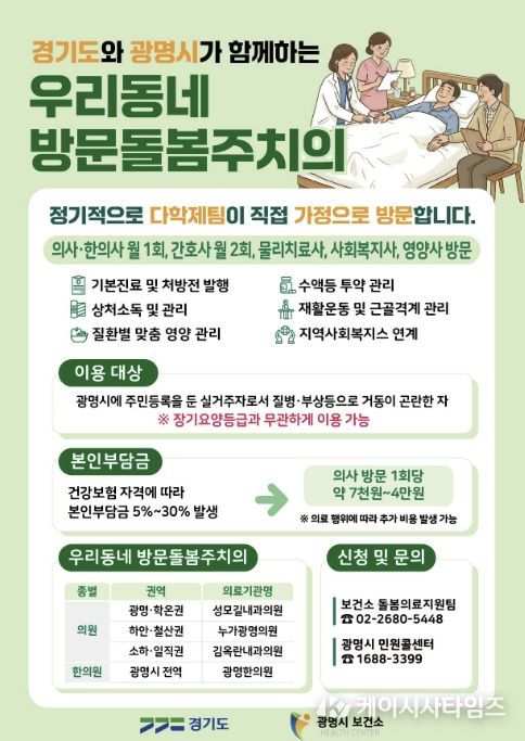(케이시사타임즈) 장기요양등급이 없는 광명시민도 집에서 방문돌봄주치의 진료를 받을 수 있게 된다.