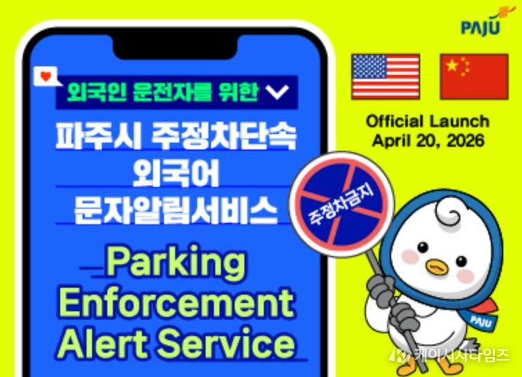 (케이시사타임즈) 파주시는 4월 20일부터 외국인 운전자를 대상으로 한 ‘주정차 단속 외국어 문자 알림 서비스’를 시행한다.