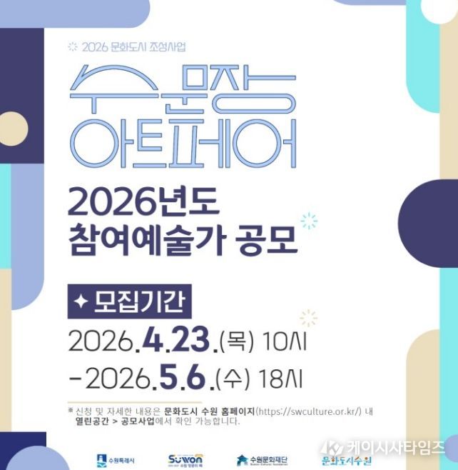 (케이시사타임즈) 수원문화재단은 지역 예술가의 작품 판로 확대와 지속가능한 창작 활동 기반 마련을 위해 2026년 ‘수문장 아트페어’ 참여 예술가를 모집한다.