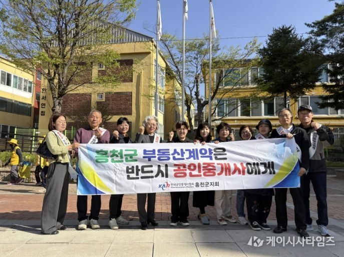 (케이시사타임즈) 한국공인중개사협회 강원특별자치도 지부 홍천군지회는 16일 오전 9시, 홍천읍 꽃뫼공원 및 인근 상가 밀집 지역에서 군민들을 대상으로 ‘안전한 부동산 거래 문화 정착을 위한 캠페인’을 전개했다.