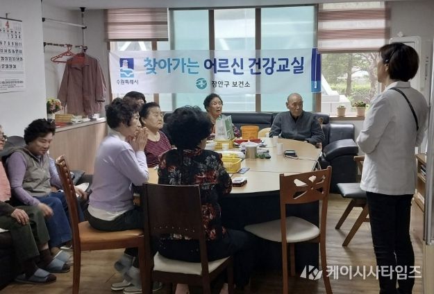 (케이시사타임즈) 수원시 장안구 송죽동은 지난 17일, 관내 로얄팰리스 경로당에서 '찾아가는 어르신 건강교실' 프로그램을 운영했다.