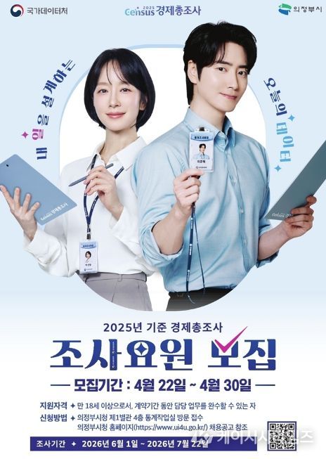 (케이시사타임즈) 의정부시는 6월 1일부터 실시되는 ‘2025년 기준 경제총조사’의 원활한 추진을 위해 조사요원 77명을 모집한다.