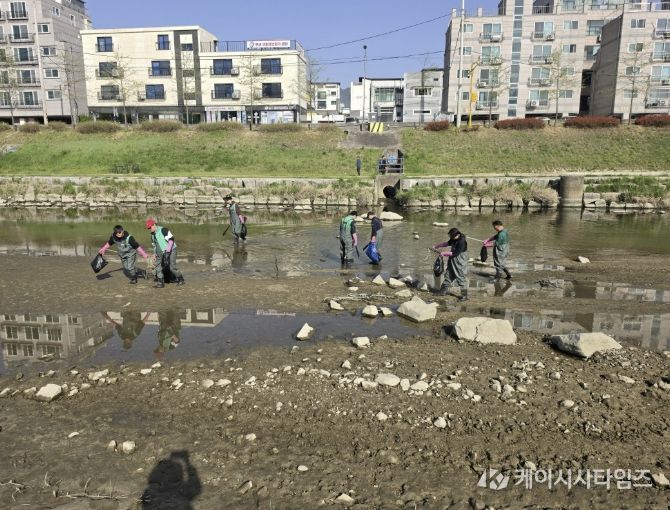 (케이시사타임즈) 포천시 새마을청년연대는 4월 18일 지구의 날을 맞아 포천천 일대에서 하천 수중까지 포함한 환경정화활동을 실시했다.
