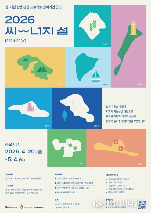(케이시사타임즈) 문화체육관광부가 주최하고 한국관광공사가 주관한 2026년 씨너지『섬-기업 상생 관광프로젝트』 참여기업 공모를 오는 4월 20일 월요일 부터 5월 4일 월요일까지 모집한다.