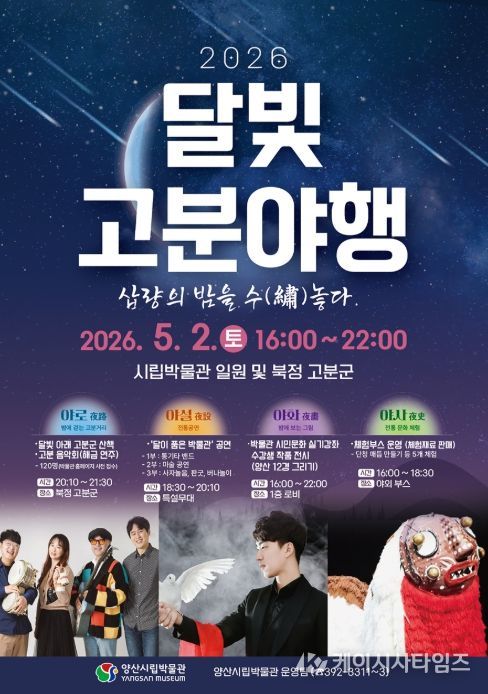 (케이시사타임즈) 양산시립박물관(관장 신용철)은 5월 2일 박물관과 북정 고분군(사적 제93호) 일대에서 ‘2026 달빛 고분 야행(夜行)’을 개최한다고 밝혔다.