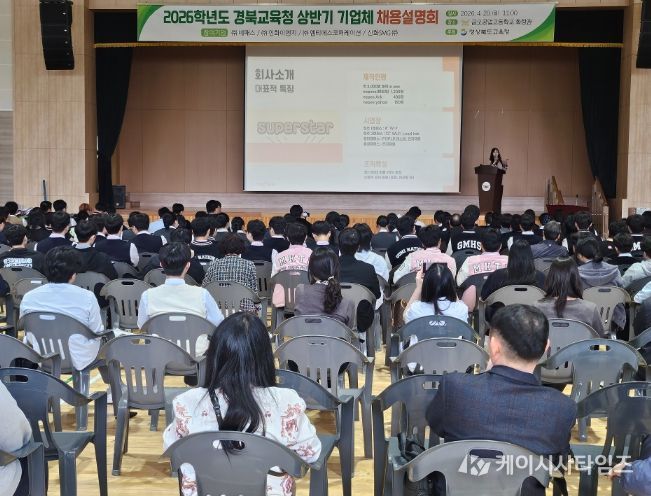 (케이시사타임즈) 경북교육청은 20일부터 24일까지 도내 직업계고등학교 3학년 학생과 학부모, 취업 업무 담당자를 대상으로 ‘2026 상반기 기업체 채용설명회’를 개최한다고 밝혔다.