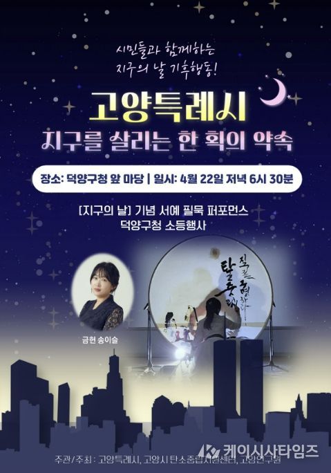 (케이시사타임즈) 고양특례시가 제56주년 지구의 날을 기념해, 오는 22일 저녁 8시부터 10분간 고양시 전역에서 소등행사를 진행한다.