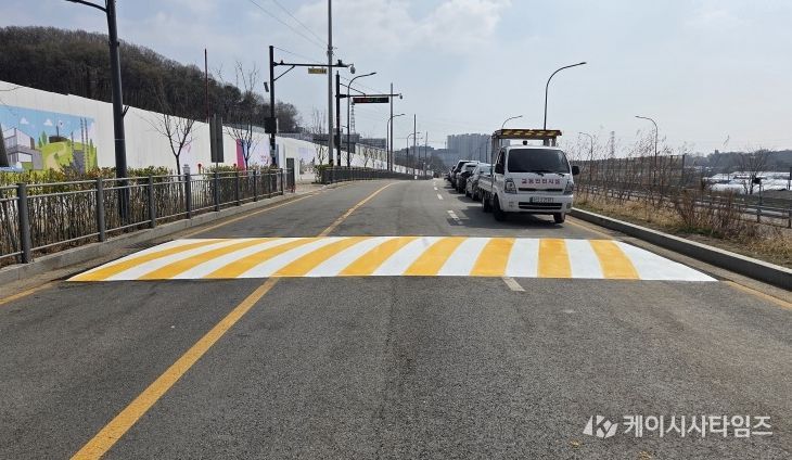 (케이시사타임즈) 오산시는 가수초등학교 통학로 안전 확보를 위해 인근 우미린 레이크시티 아파트 공사장 진출입로 주변에 과속방지턱 4개소를 신설했다고 밝혔다.